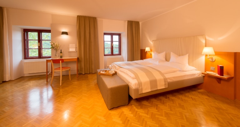 Cosy, spacious, newly designed double room with a view of the castle courtyard or the surrounding area
